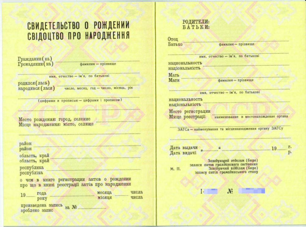 • Документ: Свидетельство о рождении УССР
